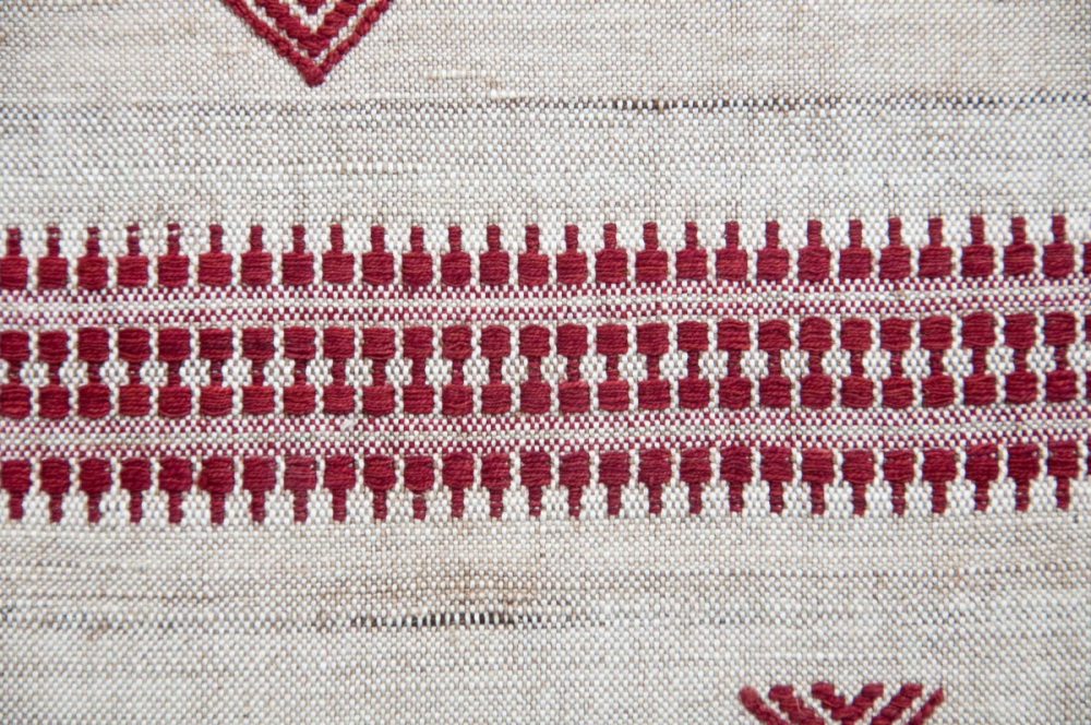 As such there is no ritualistic or social significance of the motifs, colours or the placement of the motifs in an Aal dyed traditional textile. Only one specific design Mai luga had social significance, as they were made especially on order during the wedding season. These were gifted to the bride’s mother by the groom on the marriage and were made on order on a specific budget.