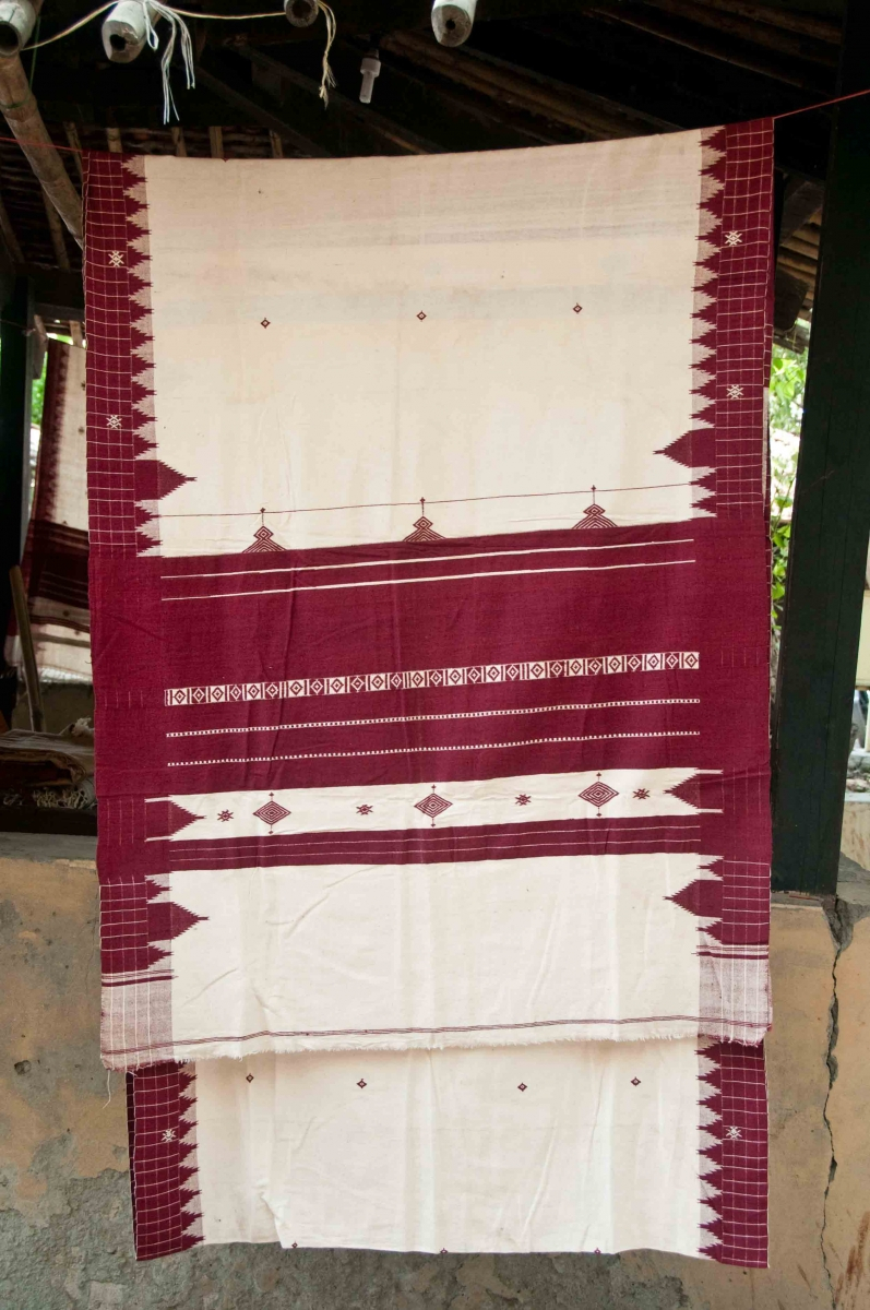 Earlier the yarns were of 10’s and 20’s count, which were hand spun and hence coarse. They were used for making all types of textiles including ‘Patas’ and ‘Angocchas’. Presently finer cotton mercerized yarns of 60s and 80s counts are also used in weaving.