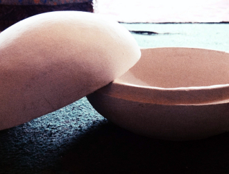 After they have been adequately soaked, large chunks of the paper are placed in a stone mortar and ground with a wooden pestle. A variety of rice flour called maand is then added to the ground paper and the mixture is poured into frameworks of different shapes and sizes. Once it settles into the cast and dries up, it acquires the desired shape. The skeleton framework needs four to five days to harden. In the winters when it takes longer, bukharis (traditional heaters) are installed in the karkhanas to speed up the process. The dried structures are cut out with a saw and a rough coat of paint is added to smoothen the surface.