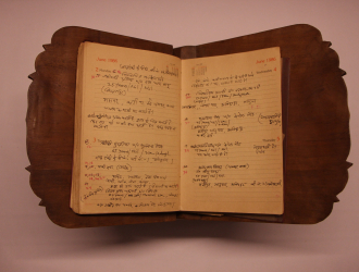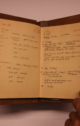 This diary was part of the field notes made by Mushtak Khan when he was commissioned to create a crafts directory of the Sarguja and Raigarh districts by the Crafts Museum, New Delhi, in 1986. Sundari Bai was one of the artists who was ‘discovered’ during that expedition.