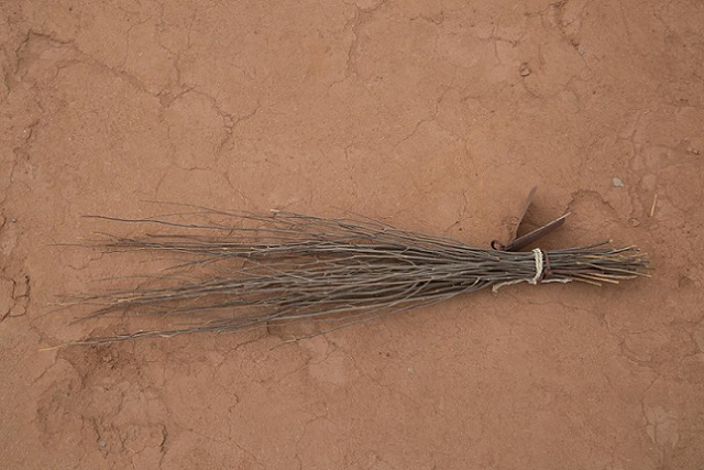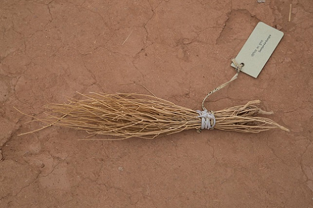 Kankoon ro bhuaro. Plant; District: Alwar; Zone: Millet. This shrub grows in the Sariska forest belt throughout the year. The broom is used in cattle sheds. Broom made by Laxman Meena.