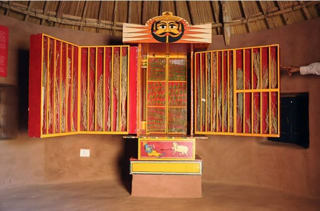 A kavad, a story-telling device, is customised at the Arna Jharna museum to showcase the different varieties of desert grasses. Courtesy Rupayan Sansthan.