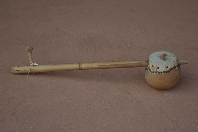 Ektara: The ektara is a plucked chordophone, commonly used in devotional music in different parts of India, Pakistan and Bangladesh. The great Bhakti saint of Rajasthan, Meera Bai, used it to sing all her compositions. A single string stretches from a small resonator across a long bamboo neck, which is plucked by a single finger.
