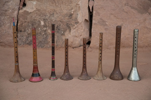 Aerophones: The wind instruments used in the folk music of Rajasthan are designed so that their music carries in the vast, empty distances of the desert landscape. They are played to produce continuous sound achieved through circular breathing. They can be divided between oboes and flutes