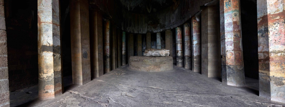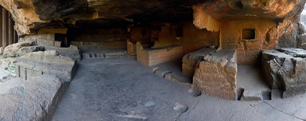 Pitalkhora, also popularly known as the ‘Brazen Glen’, houses some of the earliest rock-cut architecture. Fourteen Buddhist caves are located here. They have been cut out of a variety of basalt rock which is said to weather faster than the rocks found in other parts of Maharashtra. Out of the 14 caves, five are chaityagrihas and the rest are viharas. All the caves are from the Hinayana period, but the paintings are dated to the Mahayana period.