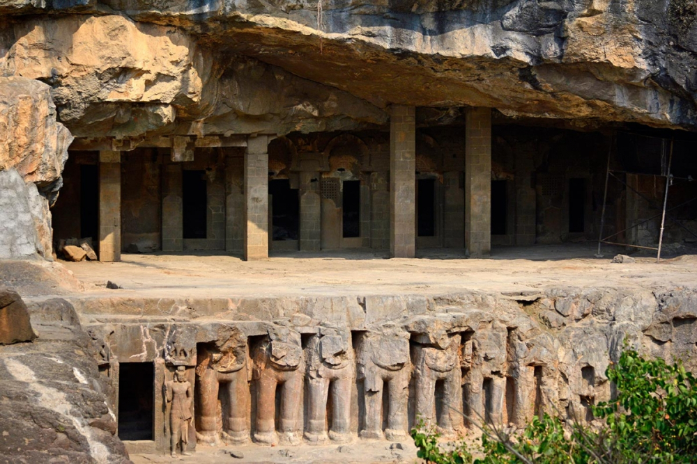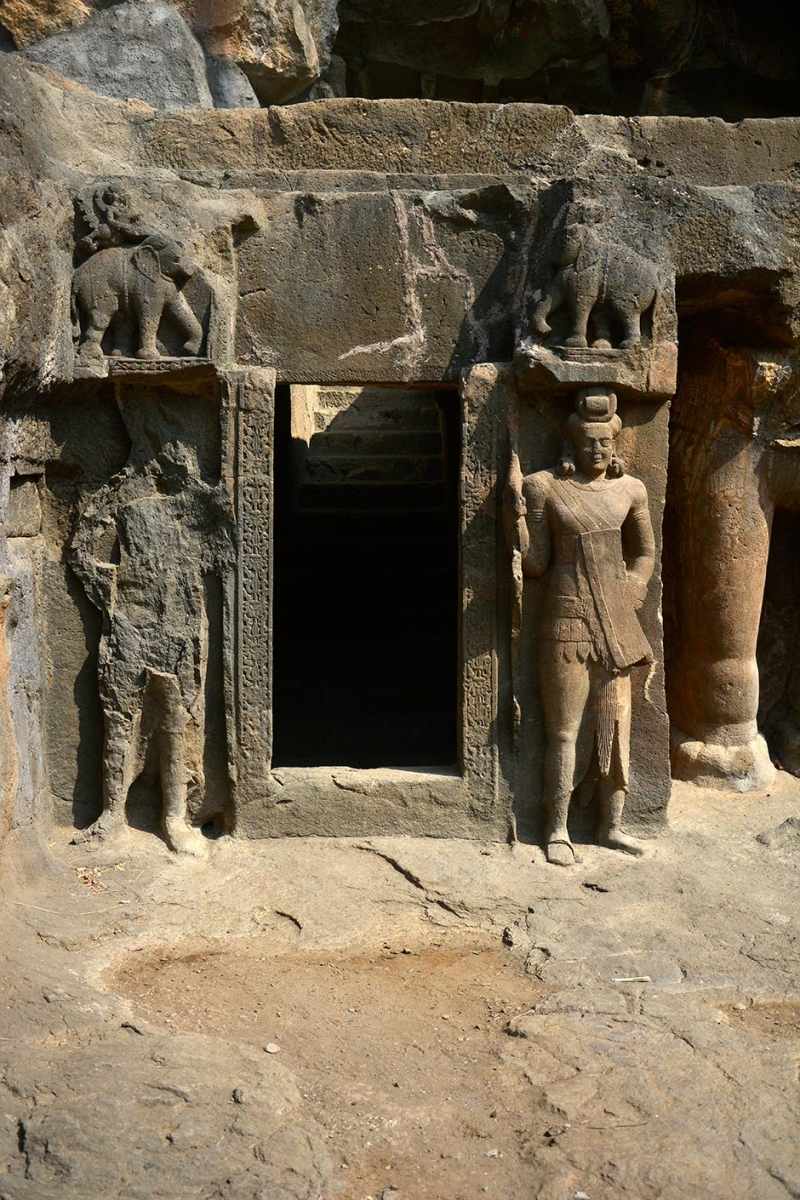 The rock-cut monuments of western India occupy a significant position in the history of Indian art and architecture. While the tradition of rock-cut architecture appears to have been discontinuous and scattered in the rest of India, it flourished without interruption in western India for a period of nearly 1,500 years, starting some time in the centuries immediately preceding the Christian era and continuing almost up to the 13th century AD. The number of rock-cut monuments found in this region surpasses that of the rest of India taken together. Several of India’s largest sites of rock-cut architecture can be found in western India with about 10 to 15 excavations located in some places, and even up to over a hundred caves each in centres like Kanheri and Junnar. Each centre has diverse structures ranging from cisterns, halls and dwelling units to beautiful temples. These monuments are dedicated to various religious faiths including Buddhism, Hinduism and Jainism. No other part of the country exhibits such large variations in rock-cut architecture in terms of type and religious affiliation. The rock-cut caves in western India are largely affiliated to the two sects of Buddhism—Theravada and Mahayana. The earliest caves excavated between 250 BC and 300 AD are devoid of the image of the Buddha and fall under the Thervadin or Hinayana tradition. From the fourth to fifth centuries AD, the Mahayana tradition rose to popularity, and subsequently, images of the Buddha and Bodhisattvas, and the invariable use of Sanskrit for writing inscriptions began to make their appearance. From the sixth century onwards Vajrayana Buddhism spread across western India, and its influence is apparent in the rock-cut architecture of the region of this period.