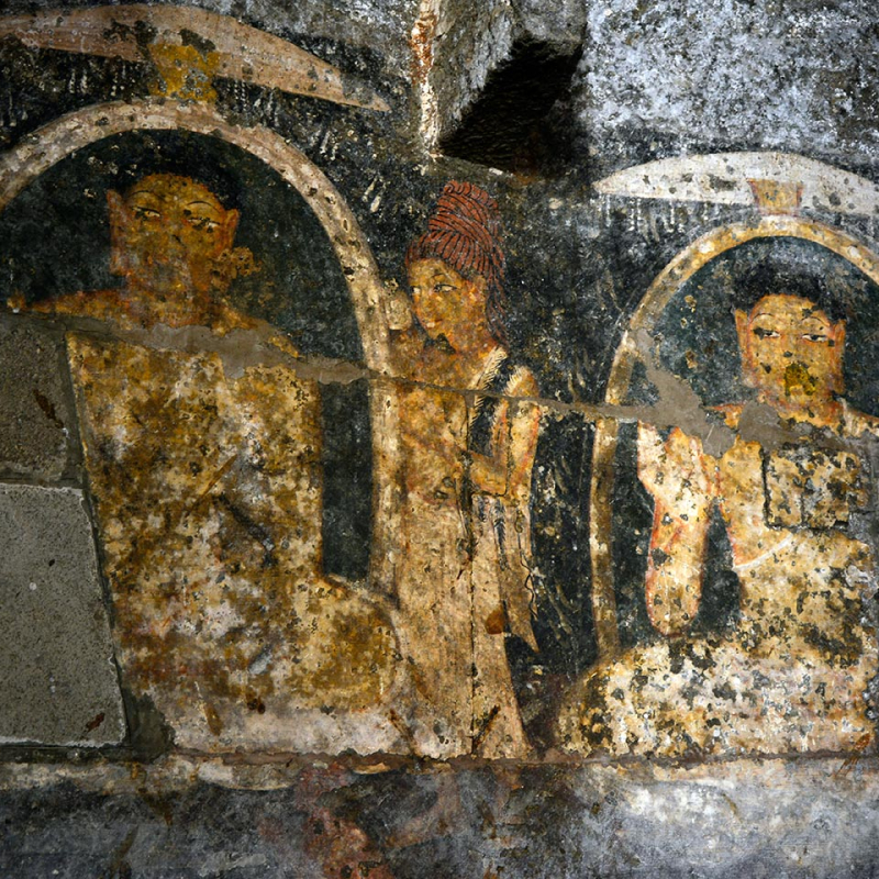 Fig. 2. Buddha figures painted on the pillars in Cave 3