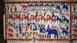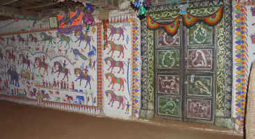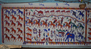 Pithora wall painting is practised extensively among the Rathva Adivasi, in the districts of Chhota Udepur and Panchmahal of Gujarat. The Pithora painting is not merely a form of art for the Rathva, it is an integral part of the ritual for their chief god Baba Pithora.