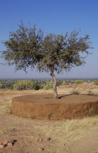 Plants growing in arid areas acclimatise to the water deficient conditions, strong sunlight and dry, difficult terrain with a number of physical adaptations. The first is to have a short life cycle, so one actually sees the desert bloom at its best during the brief rainy season. These seasonal plants called ephemerals germinate in the first rains in July, and rush through leaf, flower and fruit, leaving behind hard coated seeds that wait in the dry soil and rock fissures for the next years showers. The perennial plants that include thorny trees and bushes have deep root systems that extend through sand and gravel to tap into low ground water levels. They may also have small or no leaves, or waxy or hairy leaf surfaces, which are adaptations designed to reduce transpiration and reflect sunlight.