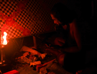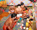 The unique complexity of porattukali thus is a challenge to record in frozen pictures. Nevertheless, this photoessay attempts to be a visual journey that takes the viewer through the different aspects and elements of porattukali, starting from scenes from the backstage to the reactions of the audiences.