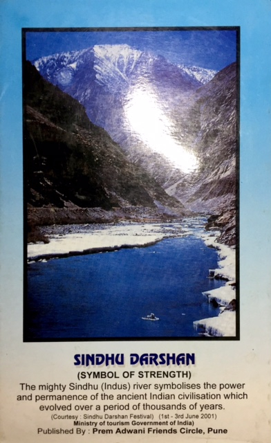 Back cover of Dr Parso Jessaram Gidwani’s book, Glimpses of Sindhi Language, showing the mighty Sindhu