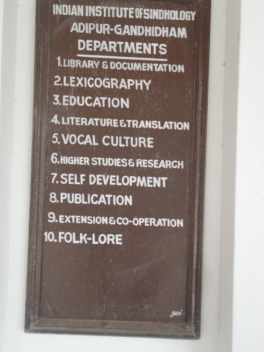 Another remarkable effort to preserve the Sindhi language and culture is represented by the Indian Institute of Sindhology at Adipur, Kutch, formed by a dedicated band of writers in 1990. Their core aims were to preserve the language, literature, art and culture through a library and museum, and to promote Sindhi through the performing arts. Mohan Gehani, in his book, A Gateway to Sindhi Literature (2016), notes that in the library of the Indian Institute of Sindhology, there are about 16,000 Sindhi books, of which 15,000 are in the Sindhi-Arabic script and 1,000 in the Sindhi-Devanagiri script. The Institute has also published several books, including the Standard Trilingual Dictionary (Sindhi-Hindi-English) with Dr. Satish Rohra as Chief Editor, Sindhi Folk Tales by Pritam Varyani, and Something about Sindh and Sindhis, by Sahib Bijani.