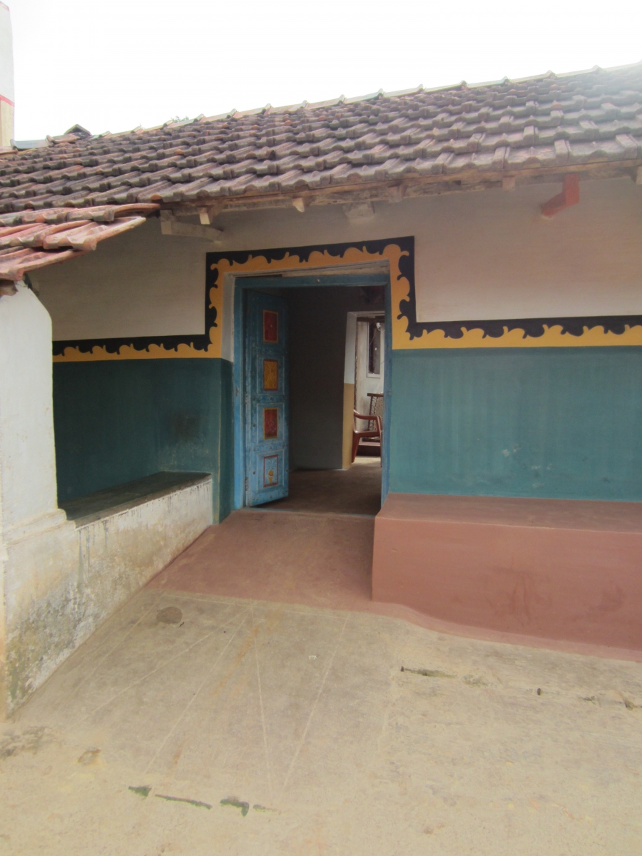 Fig. 2. Santal house with coloured bands and decorated front door
