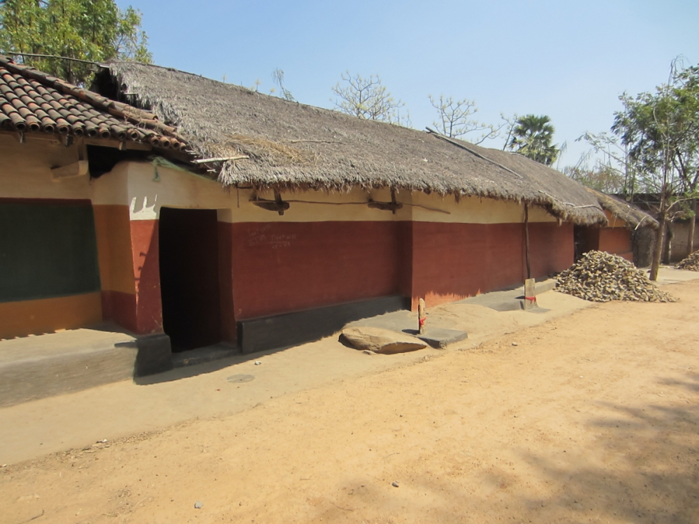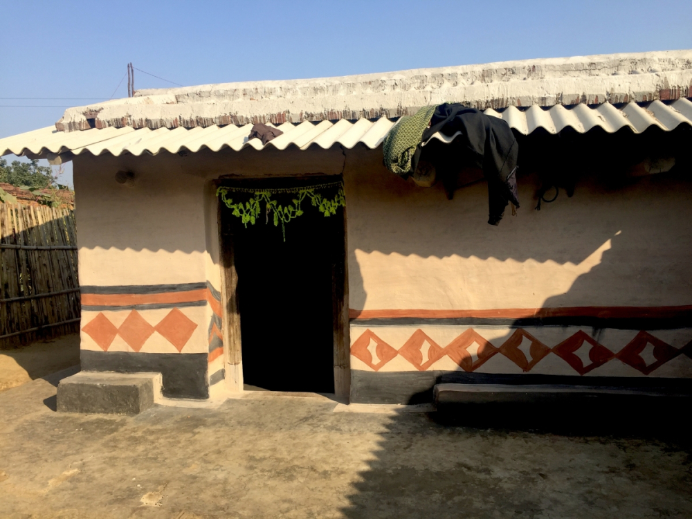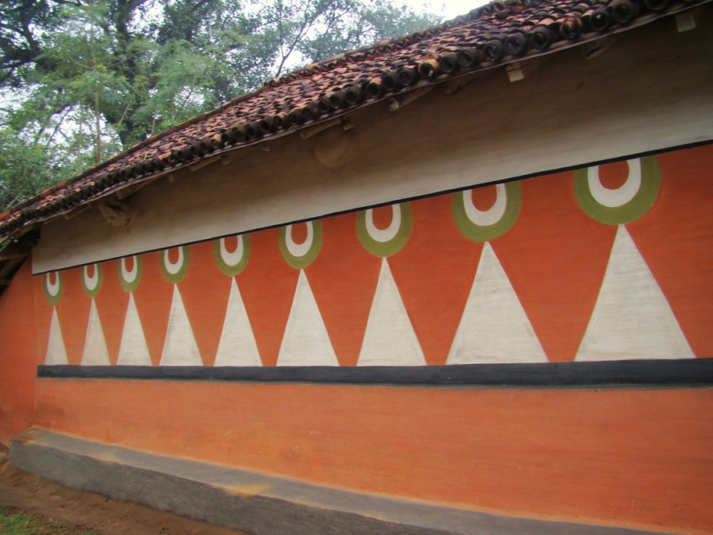 Fig. 1. Munda house with red and white bands painted on the wall