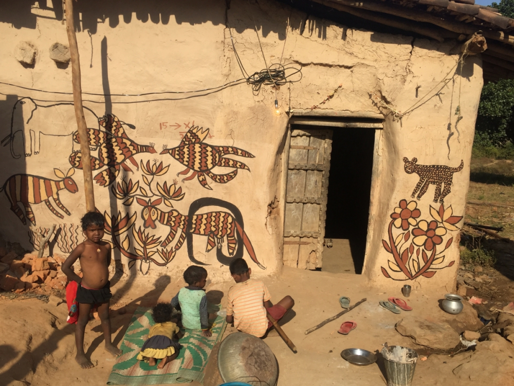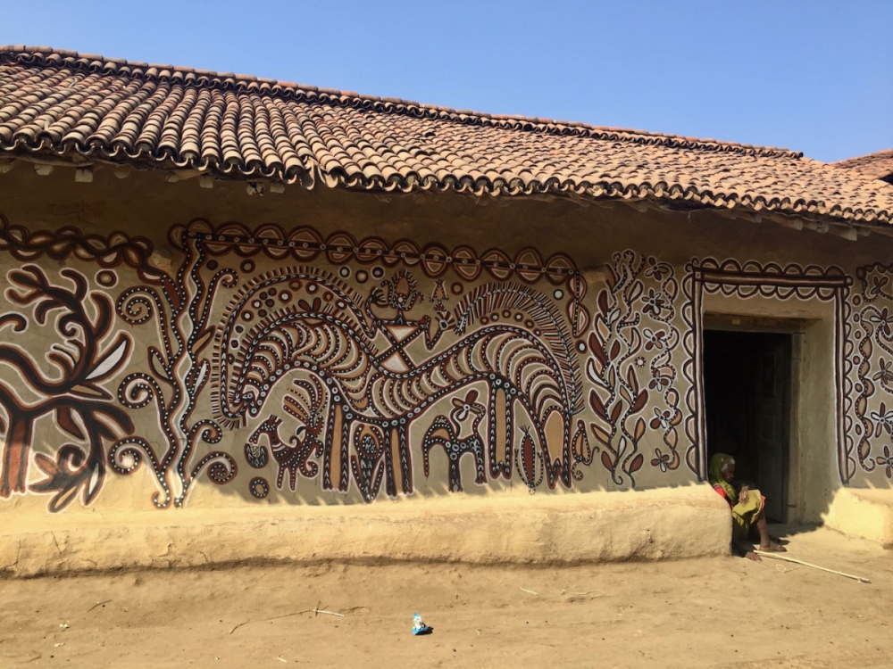 Mud murals are an integral part of the domestic architecture of Jharkhand in eastern India. Mud has been used as a building material since ancient times and continues to be the primary material for the making of rural dwellings in many parts of the world. It requires regular maintenance including annual repair and plastering. This among many communities becomes an occasion for producing elaborate designs in the form of murals.