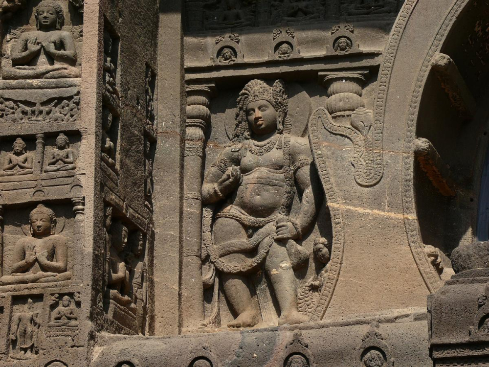 It is no deviation from the entirety of Buddhist art that, in the representations in Ajanta, both what is relevant and what is irrelevant for enlightenment have been placed directly alongside one another. As we are still able to view these representations in situ, their differences are at times quite striking – the best example being the yakṣas’ shrines on both sides of the Buddha’s cella in Cave II. What is also remarkable is that these yakṣas – like the pair discussed earlier on the façade of Cave XIX – are equipped with features that are, in fact, “relevant for enlightenment”. As one can see, the differences seem to melt away.