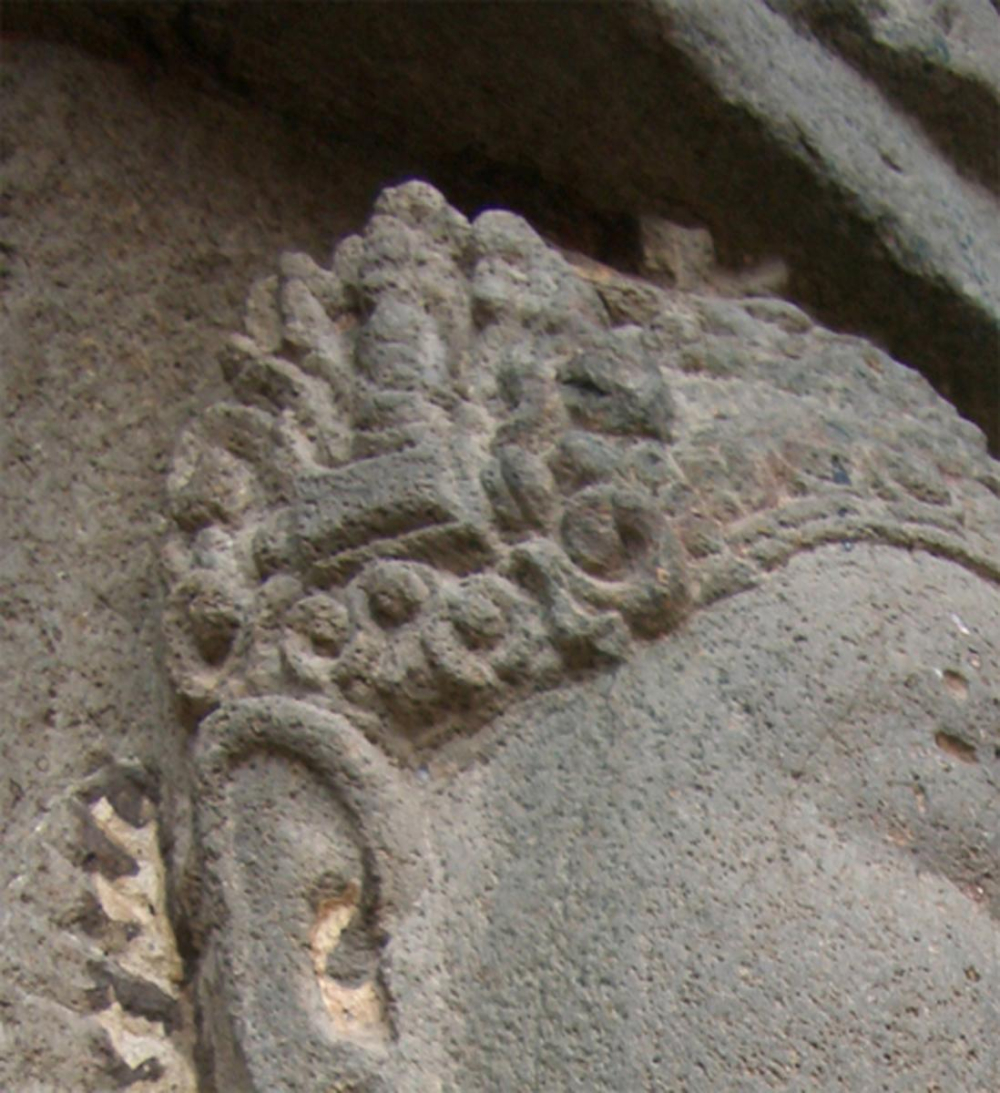 Located on the sides of the turban, hardly visible for the viewer and as if they were of no relevance, Buddhist emblems appear. One yakṣa bears a Buddha and another a stūpa; i.e. symbols which the art historian connects with two important Bodhisatvas, Avalokiteśvara and Maitreya. Are we wrong here in understanding the deities on the façade to be yakṣas? Or we are perhaps wrong in our interpretation of deities having such attributes as Bodhisatvas? We can go still further, and ask if, perhaps, our perception of the distinction between Bodhisatvas that protect and yakṣas that bring luck is merely a manifestation our own need for an unambiguous explanation, a label which was simply not important – or perhaps even non-existent – in early times.