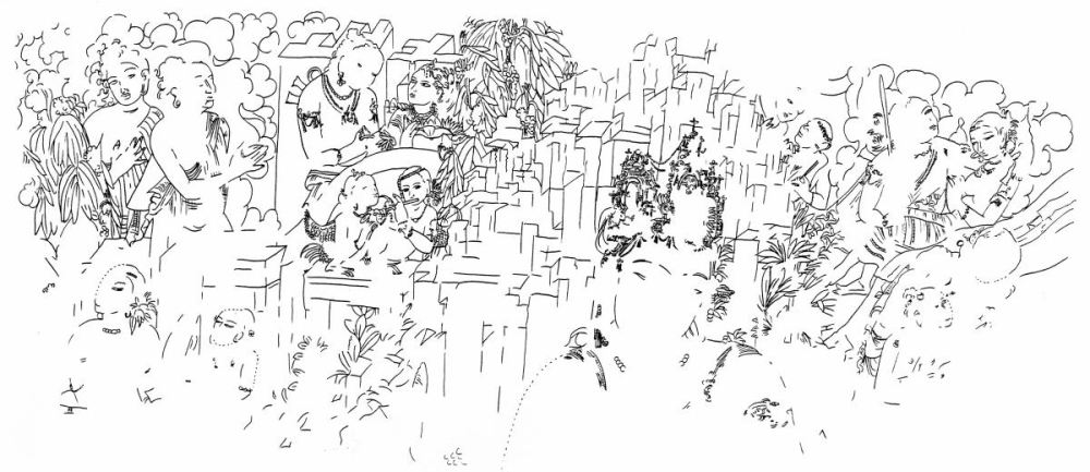 The “intrusive” paintings and reliefs, added to the “program” by the individual donors wherever space was still available on the walls, destroyed the order originally intended in the initial design. However, these pictures reveal a thought-provoking fact: there is neither a single yakṣa or nāga among them, nor a single jātaka; the intrusions depict solely Bodhisatvas and Buddhas. There are adorations of the Buddhas, rows of the Buddhas, series of rows of the Buddhas, and onward and onward; the Buddhas continue in rows and series, and what we are presented with is only that which is relevant for enlightenment.