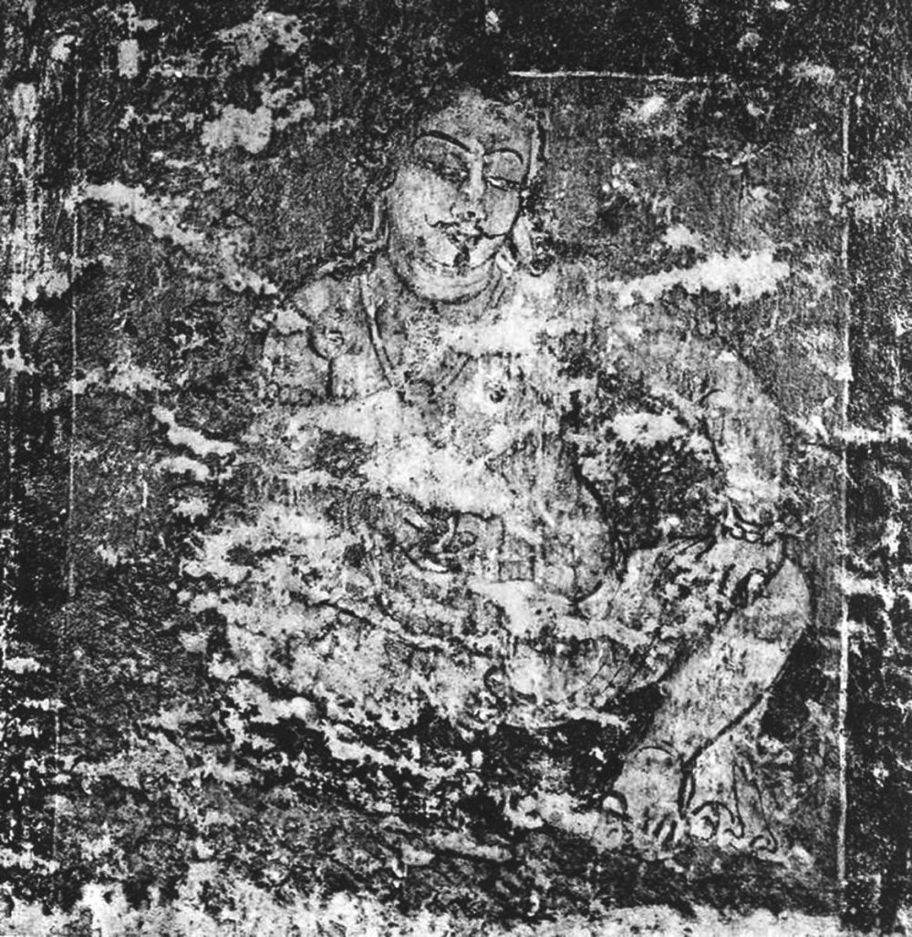 In this part of the pictorial decoration of Cave XVII (Fig. 21) we meet with the fourfold imagery, with each part of it a very different type and all illustrating the same topic. There is a jātaka story from the Buddha’s former life about saving wandering merchants from deadly peril, and there is a Buddhist deity incorporated into Mahāyāna pantheon – the saviour Bodhisatva coming in the hour of need to the wandering traders. There is the visualisation of the Buddhist doctrine with the wandering of beings through all realms of existence in the Wheel of Rebirths (according to a Hīnayāna manuscript), and there is a pan-Indian yakṣa Māṇibhadra, the protector of the traders.