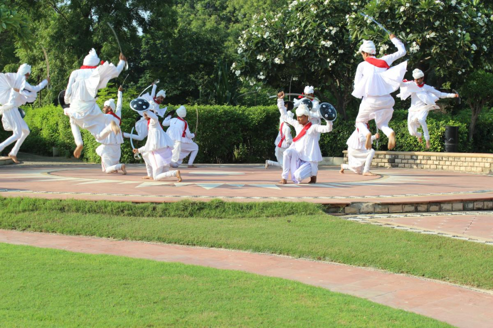Harivamsa Purana, refers to rās (group dance) as Hallisaka and mentions specific styles of dancing like Tal Rāska and Dand Rāska. Many forms of rās throughout India can trace their origin to the Hallisaka and the Rās. This has been extensively mentioned in scriptures viz. Vishnu Purana, Bhagvad Purana and Harivamasha Purana. Beginning as a form of Sanskrit drama, eventually it became a popular sport and dance. Rajshekhar’s Karpur Manjari refers to a dance in which dancers, standing in two rows dance with wooden sticks to different rhythmic patterns. From Puranas, we learn that the Yadavas arrived in Gujarat somewhere around BC 1500 and left their imprint in mythologies and also in several traditions of performance. Dandiya rās, linked with various tales of Lord Krishna is one of them.