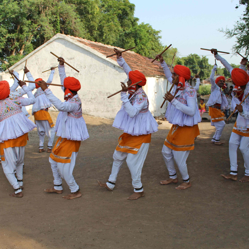 Padhar Rās is performed by Padhars, a category of scheduled tribe who are one of the five adivasis inhabiting Gujarat. They are spread in twelve villages around the natural lake, Nal Sarovar in Surendranagar district (formerly princely state of Limdi) and Ahmedabad district. Padhars claim to have migrated from Sindh and are followers of Hinglaj Mata (Baluchistan). The earlier topography of Nal Sarovar region, the lifestyle, culture and rās tradition of Padhars suggest they must have been a seafaring group living in the coastal area. Nal Sarovar is an extension of Gulf of Cambay and it is believed that river Sindhu merged with the sea here. Padhars, at present are not land owners but work as agricultural labourers. They earn a meager living as boat men during winter, entertaining tourists in Nal Sarovar.