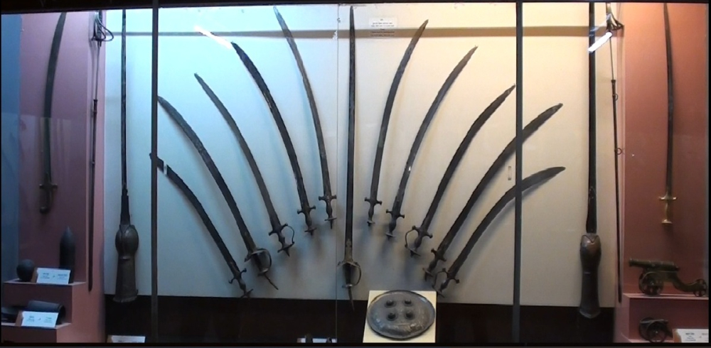 Daggers performed major role in the close-combats. Diverse forms of daggers like Jambiya, Katyar, Khanjar, Peshkabj, Kard etc. decorated with intricate carvings, jade, ivory hilts can be seen here. Other arms include small and big shields made of leather, turtle back and metal. Some are inscribed with Arabic messages. Other remarkable weapons include Jagnol, Gurj, Dao, Kanpatimar and Ankush. Bagh Nakh (Tiger Claws) reminds us the meeting of Chhatrapati Shivaji and Adilshahi general Afjalkhan.