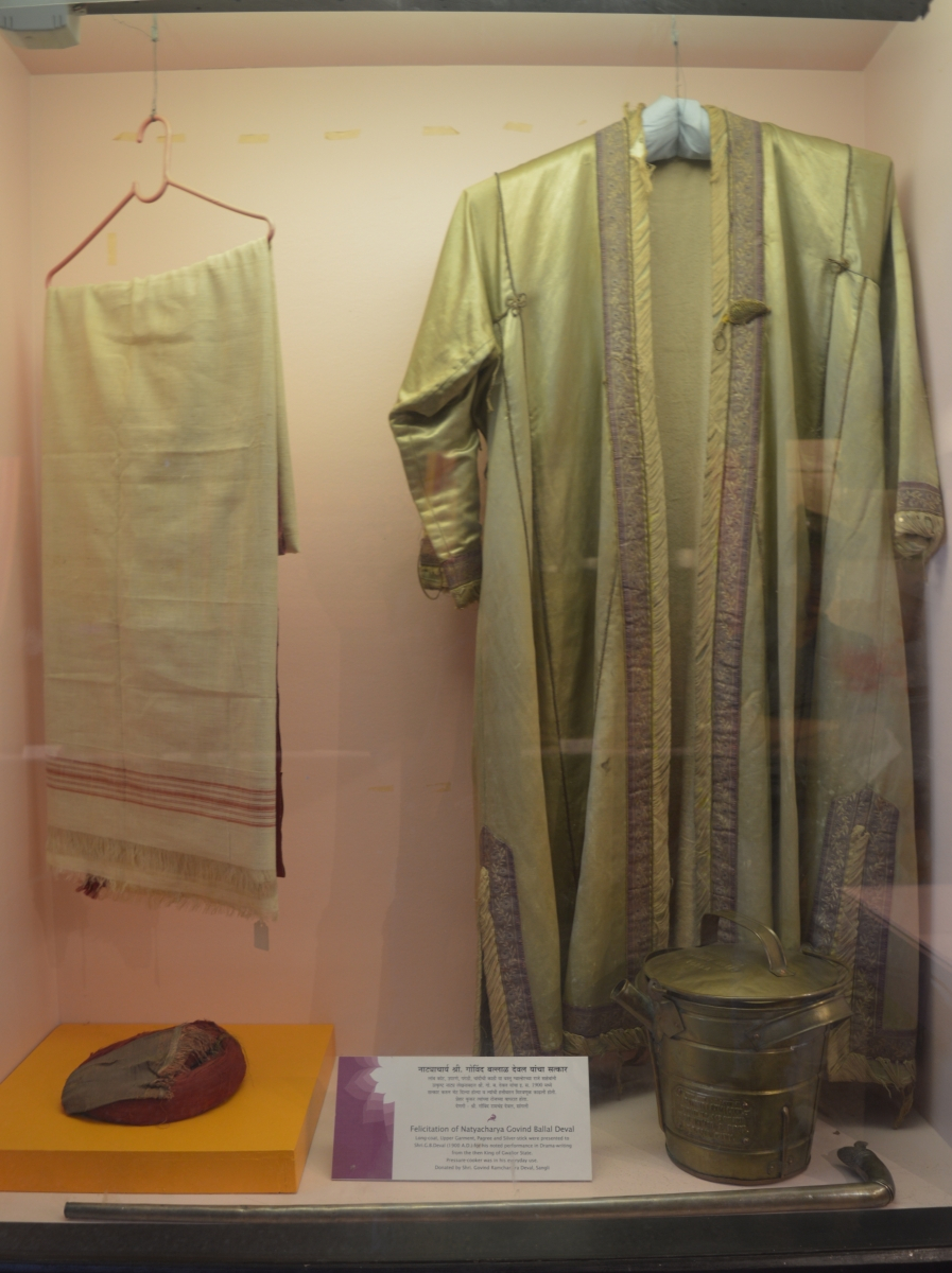 Bhau Kolhatkar, Nanasaheb Joglekar, Ganpatrao Bodas, Balgandharva were some of his great pupils; who later took the Marathi stage to its golden era. For his creditable play-writing, the maharaja of Gwalior gifted him a long silk coat, ‘uparane’ (a shoulder garment), pagdi and silver handled walking stick in1900 and arranged his procession on an elephant. All these objects displayed in the Kelkar Museum awaken memories of his contribution to the Marathi stage in 19th century. (Fig. 8)