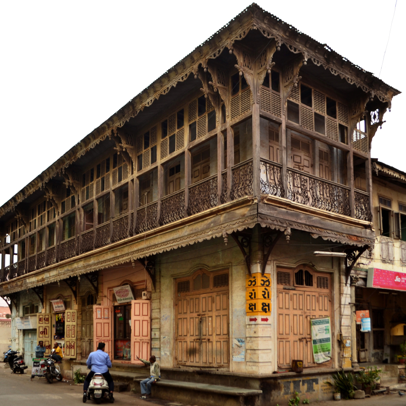 These externalities led to development of Rander as a cultural and economic hub in the western region. It is also said that education flourished in Rander because of Kavi Narmad, who established a school here and travelled daily to teach at the school from across the bank of the Tapi River in a hodi (ferryboat). There are many written records of the 16th and 17th centuries but very less documentation has been found of the times before that. This leaves ones with the idea of knowing about a place through oral traditions, folktales and songs that may not be accurate but are the only way to conjecture the past. There are many such dant kathas (tales passed on from generation to another), one of which says that Maharaja Ashoka and his disciples brought Jainism to Rander and also built Jain Derasar there. There were many viharas (Jain resting places for monks and pilgrims) that were built during the 17th and 18th centuries and during the same time many sarais (resting places for Muslim communities who went on Hajj) were also built. It is said that both Islamic culture and Jainism flourished simultaneously in Rander. Rander also exemplifies principles and characteristics of a medieval fortification town; there is a plan in the Jaipur City Palace Museum showing the square layout of the fortification around Rander. It shows how streets, public and religious buildings and public squares were planned, which represents thoughtful urbane public spaces that were envisaged for the town. Till date the place exemplifies principles of good urbanism, which can be seen in the urban structure of the town and the humane scale public squares which are laid out in conjunction with the prominent public buildings.