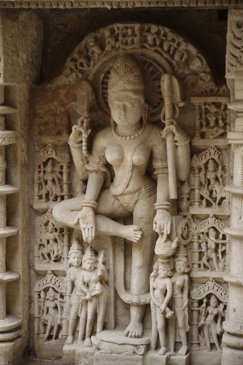 The style of the architecture and sculpture place Rani ki Vav squarely in the last years of the 11th century. This fact is also confirmed by the Jaina pontiff Merutuṅga in his work Prabandhacintāmaṇi (‘Wishing Stone of Narratives’) from 1304 CE. The Prabandhacintāmaṇi is a historical account, where events are recorded in a chronological order. In this, Merutuṅga mentions that Bhīmadeva’s Queen Udayamati had built a magnificent step well in the capital city of Anhilwad. The passage recording the building of the step well occurs immediately after Merutuṅga’s narration of the reign of Bhīmadeva, and just before the beginning of the reign of his son and successor Karṇa: ‘He [Bhīma] began to rule in Vikrama Saṁvata 1077, and ruled for 42 years...His queen Udayamati caused to be built in Pattana a new reservoir...’