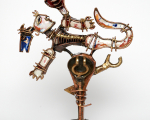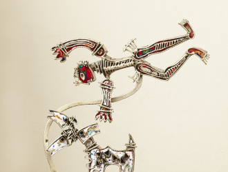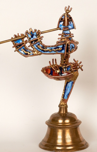 At the Cholamandal Artists Village, its visionary founder K.C.S. Paniker inaugurated the exhibition of small-format artworks. Painters and sculptors of Cholamandal presented small-size works that contained all the artistic elements of their regular works. The small-format works became affordable and accessible to the common man and they became successful in taking contemporaneity and modernity in the arts to a wider public. Nandagopal's small format sculptures presented in this image gallery bring our attention to the intricate jewel-like details of Nandagopal's sculptures.