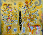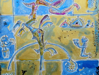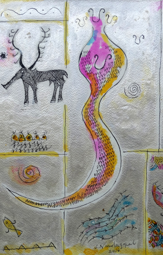 This image gallery presents a few of the watercolour works of eminent sculptor S. Nandagopal. The watercolour works reveal that Nandagopal always used totemic symbols and their evocative visual elements as the milieu for his sculptures. His watercolours and drawings preceded his sculpture-making, and in many instances we find that many visual elements of his watercolours did not make it to the actual sculptures.