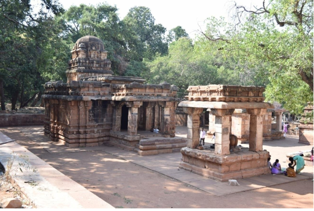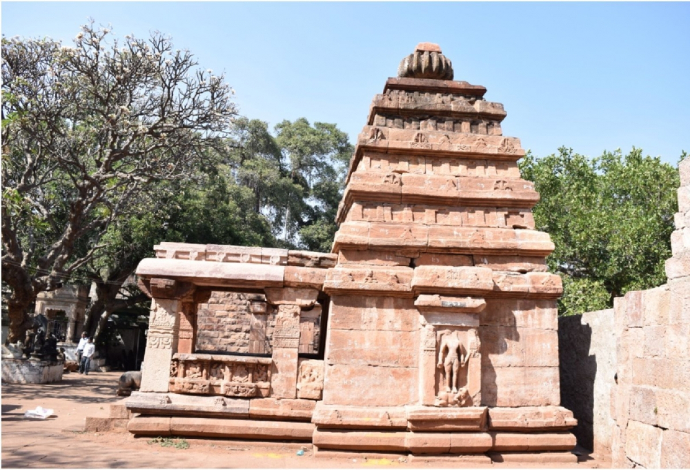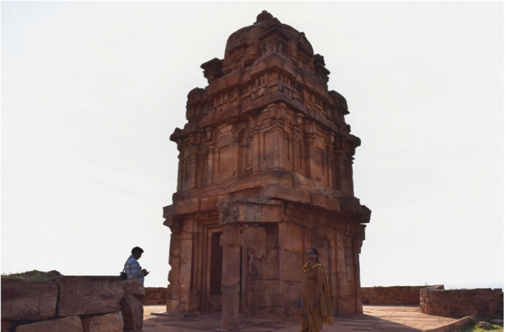 The temples in discussion exhibit complex plans. The Vīrūpākṣa temple, originally known as Lōkēśvara, on plan is a four-storeyed sāndhāra vīmāna consisting of a mukhacatuṣkī, gūḍhamaṇḍapa, two subsidiary shrines in the antarāla (antechamber) and a garbhagṛha that blooms into a Draviḍian śikhara. It also has an ornate Nandi maṇḍapa (Figure 17). It was once surrounded by an enclosure wall with niches and gopurams of which nothing remains. The Pāpanātha temple is built in northern style (Figure 18). On plan, it consists of a mukhacatuṣkī, two subsequent maṇḍapas, sabhāmaṇḍapa (meeting hall) and ardhamaṇḍapa and a garbhagṛha with circumambulatory passage.