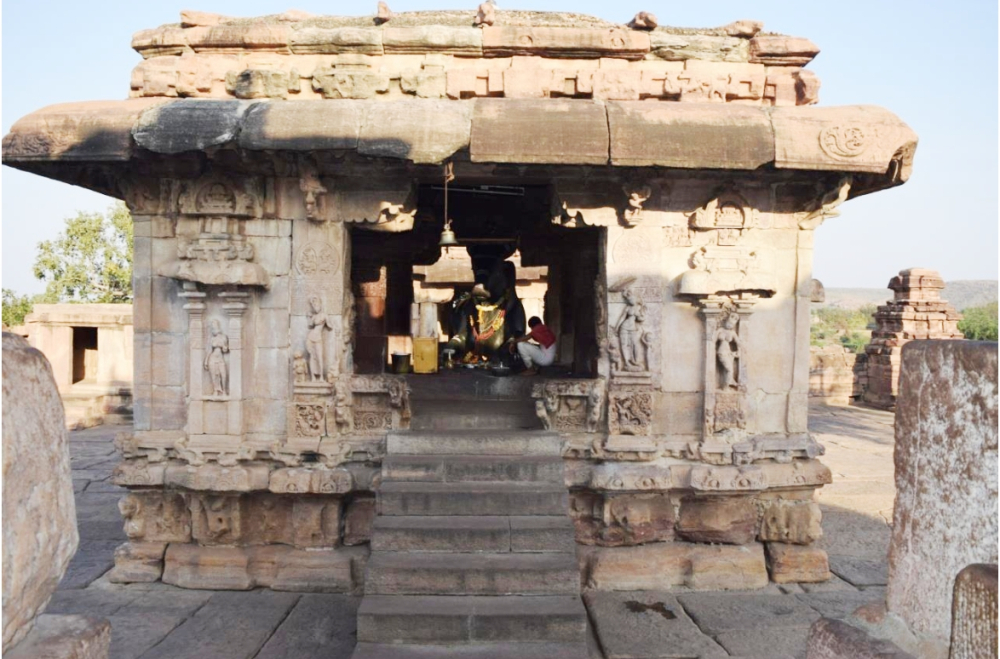 he prolific building activity under the Calukyas developed over a period of two hundred years. It began with simple rock-cut shrines and ended with complex structural temples. The temples were simple in terms of plan and ornamentation in the beginning, as seen on most of the temples at Bādāmi, Aihoḷe and Mahākūṭa. While Bādāmi and Aihoḷe were scattered on a vast landscape holding temples dedicated to various gods such as Śiva, Viṣṇu, Gaṅeśa, Sūrya, Mahākūṭa emerged as an enclosed temple space holding temples invariably dedicated to Śiva. The latter site, Paṭṭadakal, also evolved as a temple conglomerate with complex temples that represented the zenith of Calukyan architecture.