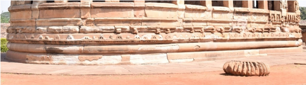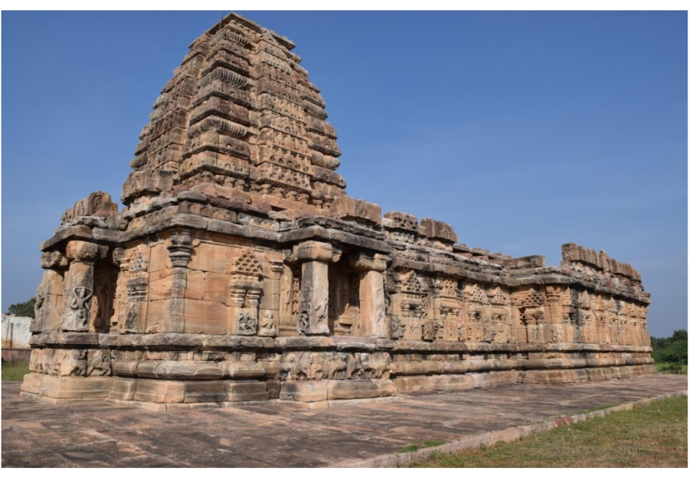 Situated on the left bank of the river Malaprabhā, Paṭṭadakal is acclaimed as a royal coronation centre. Its royalty is amply suggested by the royal temples and inscriptions found from the site.[xiv] It is believed that this site developed after Bādāmi, Aihoḷe and Mahākūṭa. The site exhibits nine fully conceived temple forms of both northern and southern Indian origin, enclosed within a complex. The large variety of architectural forms, embellishments, amalgamation of styles and motifs witnessed at this site renders it different from the earlier sites of Bādāmi, Aihoḷe and Mahākūṭa. Today, Paṭṭadakal is recognised as a world heritage site. The temples under consideration are the Vīrūpākṣa and Pāpanātha (200 meters away from the main complex).
