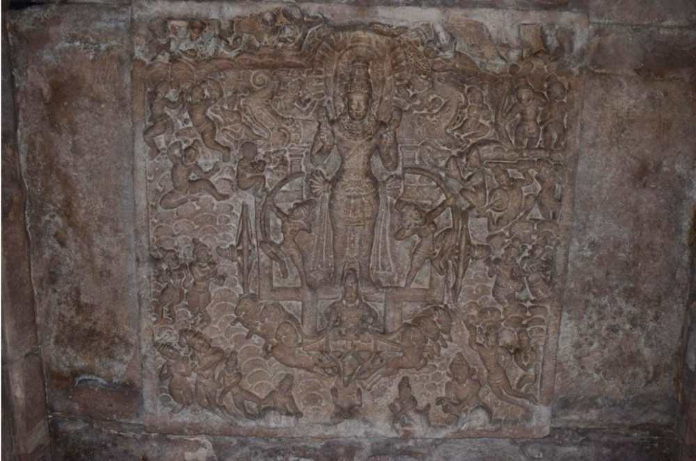 Figure 19: Paṭṭadakal, Vīrūpākṣa temple, gūḍhamaṇḍapa, Sūrya ceiling panel