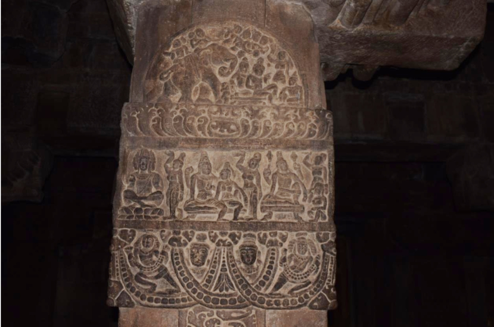 Figure 20: Paṭṭadakal, Vīrūpākṣa temple, gūḍhamaṇḍapa, pillar carving, garland bearer