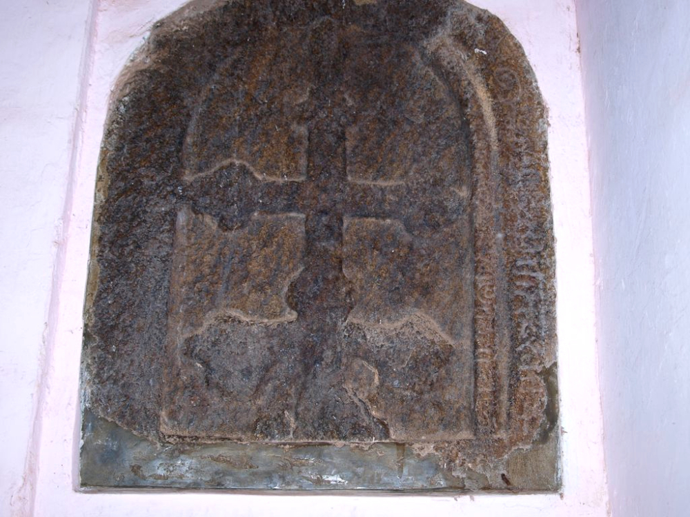 The church at Kothanalloor was rebuilt many times. The present church is believed to have been built in 1901 (S.S. Gervasis & Prothasis Forane Church 2018). In 1925, Fr Peediyekkal reported that he had found the granite cross tablet in 1921–22, and had instructed the authorities to place the cross in the church (Hosten 1936:343). They seem to have placed the cross on the northern wall of the church, and then later covered it with plaster. In 1987, this cross was accidentally rediscovered under the plaster of the north wall by Rev. Fr Matthew Kizhakke Aranjaniyil of Mutholapuram and Rev. Fr Isaac Kurichiel of Koodalloor (Vazhuthanappalli 1990:16). This cross does not have Pahlavi inscriptions, pillars or an arch, but it has raised edges with a pointed top. The dove is not well-defined and the finish is raw.