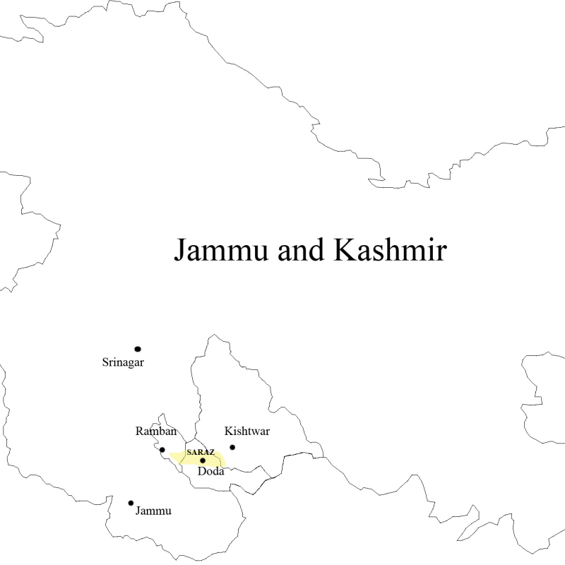 Languages of Saraz belong to the Indo-European family of languages which are spoken in Europe, Iran and South Asia. Most of the languages spoken in northern India and Pakistan belong to the Indo-Aryan sub-family. There are further divisions within this of which Dardic, Northern/Pahari, Punjabi and Rajasthani group of languages are relevant here. The Dardic group of languages are spoken in Jammu and Kashmir, northern Pakistan and pockets in eastern Afghanistan. Kashmiri and Sarazi’s neighbours Poguli and Kishtwari belong to this group.