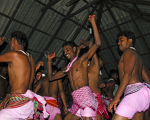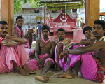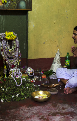 Images of Shiber Gajon (the Gajon of Shiva) that takes place in many areas of North and South 24 Pargana districts on the occasions of Charak in the month of Chaitra (mid-March to mid-April) and Dharmadel in the month of Vaishakh (mid-April and to mid-May). Both these festivals are dedicated to Shiva. These images of Gajan Sanyasis prove that they are worthy of the name in inflicting utmost pain on their body and tolerating it. They are toiling people, mostly working in agriculture, who do not enjoy the luxury of spiritual contemplation. Devotion through physical suffering is what they offer to the Lord .