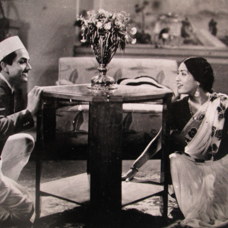 At Prabhat, she worked in Manoos/Aadmi (Dir. V. Shantaram, 1939). The film was touted as 'a picture for the intelligent and discriminating filmgoer, the social reformer and intellectual.'[xxi] Her multilingual song 'Kis liye kal ki baat' was sung in six different languages (Hindi, Marathi, Punjabi, Tamil, Gujarati and Bengali) and was a treat for the audiences and ensured her nationwide popularity. Shantaram was applauded for his portrayal of romance between a policeman and a prostitute.