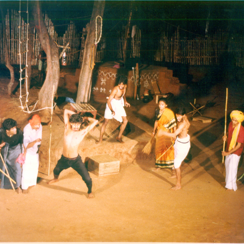 When asked whether general fitness necessitated martial arts, Anju Singh disagrees, and describes the reason behind this training. ‘Take a play like Romeo and Juliet,’ he begins. These plays have duel sequences, and so do Indian mythological plays. Sometimes, there are stunt sequences. Without training in martial arts, verisimilitude seldom takes place. ‘Especially in the age of TV and cinema, where stunts are greatly detailed, theatre also begs truer performances. We’re the equivalent of stunt directors,’ he adds.[19] It was a hard but fruitful journey for Anju Singh, a martial-arts specialist. He had to learn the ways of adapting his skill for theatre, along with the artistes. Every teacher at Rangayana grew as much as the artistes.
