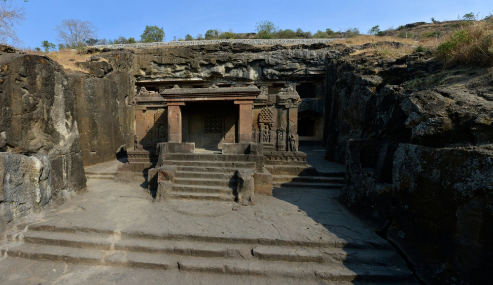 In the context of the development of Indian temple architecture, Ellora caves play a significant role for the reason that here one finds a culmination of centuries long evolution of Indian cave temple architecture. Rock cut cave excavation activities in India go back to around third century BC as we see at Lomas Rishi cave in Bihar and later in western India at Bhaja, Kondavite, Karle etc. There is a continuity of cave excavations spanning almost four centuries from 1st century BC to 3rd century AD under Hinayana Buddhism predominantly in western India. Later during the Gupta period a second cycle of cave excavations independent of the rock cut architecture tradition in western India was initiated in the Malwa region in Ram Garh and Udaygiri caves [both in Madhya Pradesh]. The experiments at Udaygiri amalgamate with the mature tradition of western India at Ajanta, the magnificent acme of rock cut architecture. Cave architecture tradition soon disperses from Ajanta to traverse through Deccan and south India only to return back to western India with new designs and technological advancement as seen at Ellora, especially at Kailasanatha temple [Cave 16]. One can almost call Kailasanatha temple an encyclopedia of Indian cave architecture as it successfully synthesizes the long tradition of cave carving in western India, Malwa, Deccan and south India. It would not be erroneous to call the architecture of Kailasa at Ellora a ‘national style’ for the reason that craftsmen from various regions of India appear to have worked here leading to the creation of a pan Indian cave architecture. The caves at Ellora are truly an encyclopedia of cave temple architecture as we can trace the development and innovations of Indian cave temple architecture, starting from the 5th to the 12th century here itself.