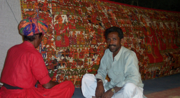 This module presents an overview of the epic narrative of Pabuji, a mythical hero whose exploits are put to verse and sung by bards, the male bhopa and the female bhopi, who use a large painted backdrop to point out key moments within the narrative. This epic is central to the nomadic and pastoral communities and forms an important part of the folk traditions of western Rajasthan. As a part of the collaboration between Sahapedia and the Rupayan Sansthan, Jodhpur, this module refers to numerous audio, video and photographs from the Rupayan Sansthan Collection at the Arna Jharna Desert Museum, Jodhpur.