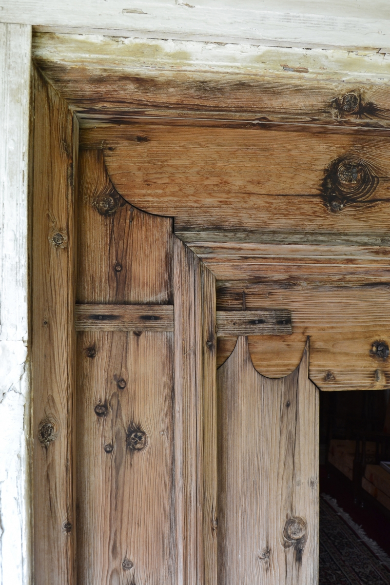 Fig. 26 & 27: Examples of wood-carving on the openings at temple at Devidhar and Summerkot. The wall punctures such as doors and windows are the most ornamental elements in hill architecture. The sizes of the openings are relatively small and are articulated within the horizontal tie beams.