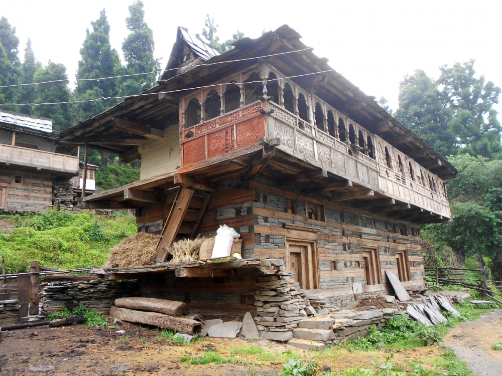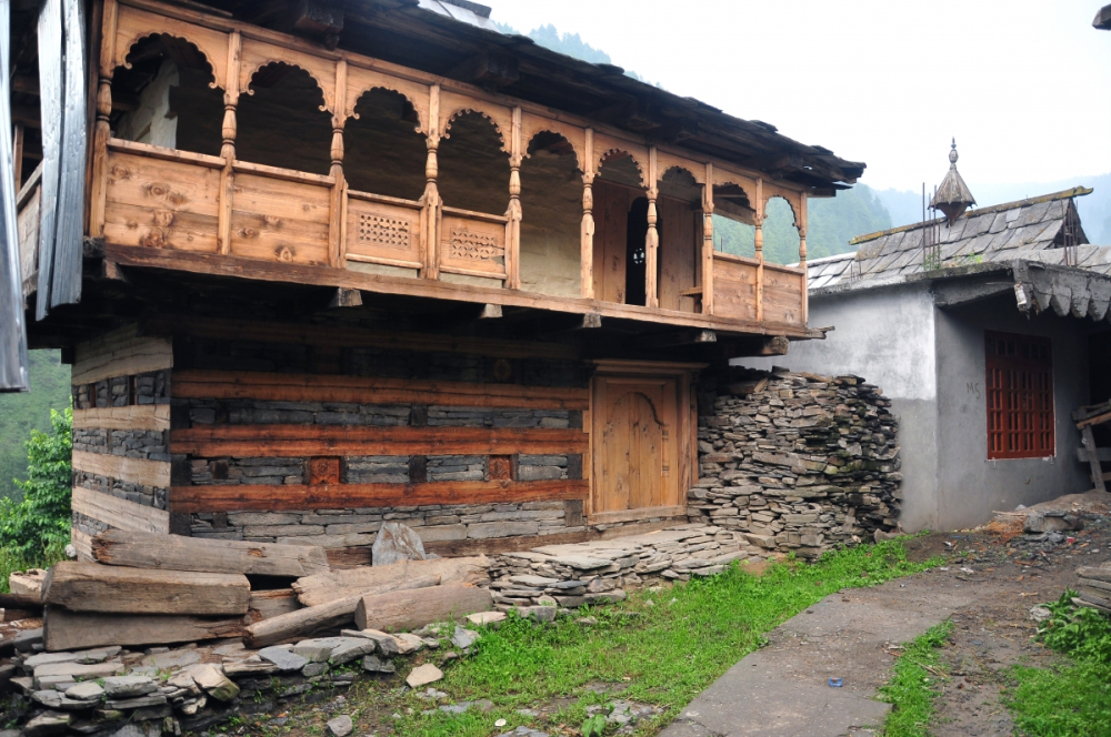 A typical house in Himachal is usually two or three-storey high while a temple may rise much higher from a single storey to a tower with seven storeys. However, the method of construction and elements remain similar in most cases. The level of articulation and detailing is far more intricate and elaborate in temples. In the houses, usually the ground floor is used for keeping cattle and the living areas are on the upper floor.