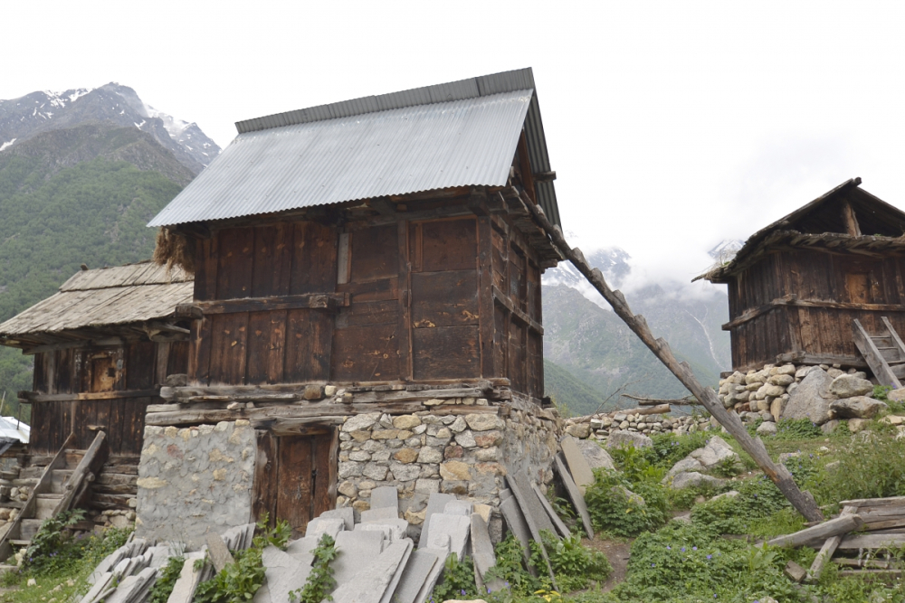 Fig. 5: A free standing granary in Chitkul. While different in scale and use all the buildings show the typical and recognizable components of kath-khuni buildings.