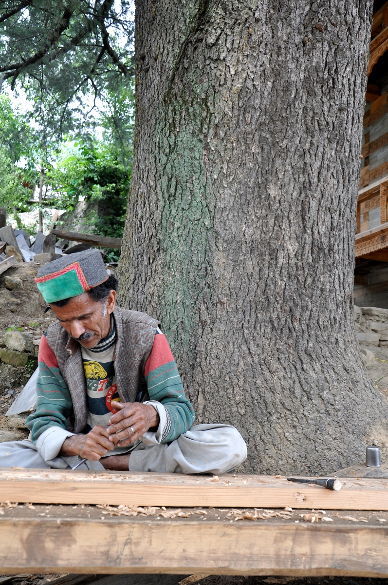 The construction of houses is largely done by hand and by the residents themselves, sometimes with the help of other residents from the same or nearby village while special artisans are employed for construction of temples or religious structures. The know-how of the building construction is passed from generation to generation in mostly oral and empirical tradition by working as an apprentice for a number of years. The mistris of Himachal are typically adept at working with wood and stone, and are a veritable storehouse of indigenous knowledge. Such knowledge may range from where to source the wood or stone, types of wood available and which ones are appropriate for either structural or carving purposes to how to cut thin sheets of singles form a block of stone using rudimentary tools and so on. Usually the entire construction is carried out manually with limited tools and the use of power-driven technology is minimal and was introduced only recently. It is the close interdependence between people, materials, making and environment that has created a lasting architectures specific to the needs, climate, place, and culture and that evokes a sensation that is special and spiritual, beyond the materiality.