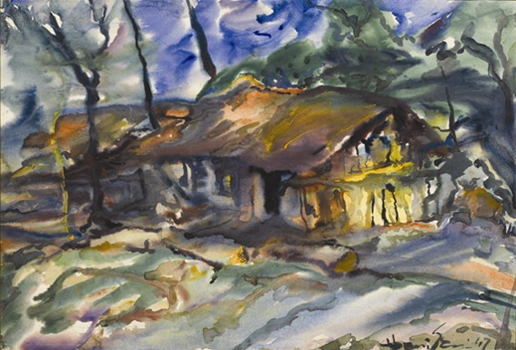 Plate 12: Village Scene, watercolour on paper, 54 cm x 38 cm, 1947