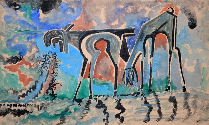 Plate 9: Goats, gouache on paper, 63.5 cm x 38 cm, 1954