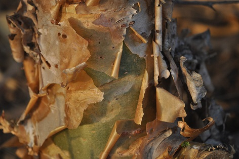 - Shiny, peeling bark